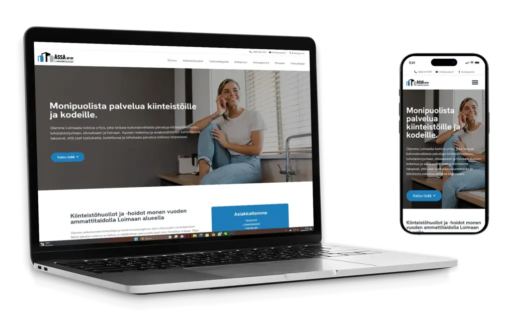 Tiedostamme, että nykyään enemmän ihmisiä käyttää internetiä mobiililaitteilla kuin koskaan aikaisemmin. Siksi kaikki meidän luomamme sivustot noudattavat mobiili edellä -suunnitteluperiaatetta. Tämä tarkoittaa, että kotisivusi näyttävät upeilta ja toimivat saumattomasti kaikilla laitteilla, taaten parhaan mahdollisen käyttökokemuksen jokaiselle vierailijalle.
